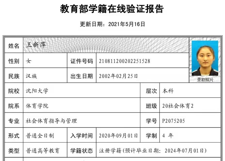 | 5118 | 王新萍 | 女 | 175cm | 59kg | 2002-02-25 | 210811200202251528 | 丁组 | ![]() |