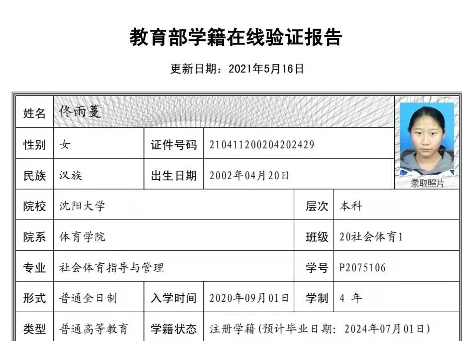 | 5115 | 佟雨蔓 | 女 | 166cm | 58kg | 2002-04-20 | 210411200204202429 | 丁组 | ![]() |
