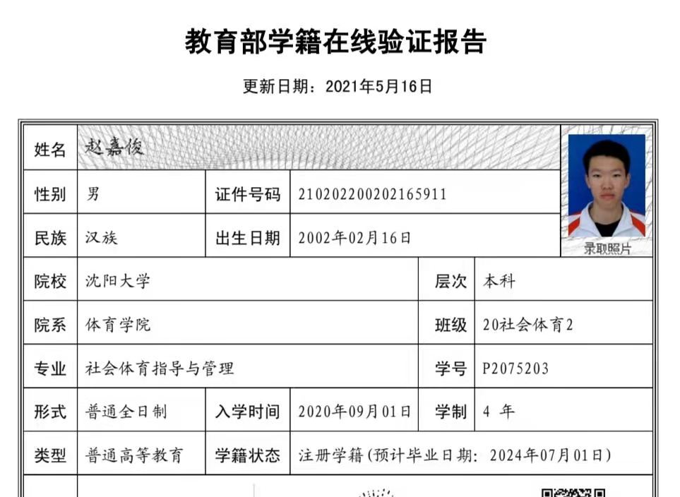 | 5106 | 赵嘉俊 | 男 | 183cm | 67.5kg | 2002-02-16 | 210202200202165911 | 丁组 | ![]() |